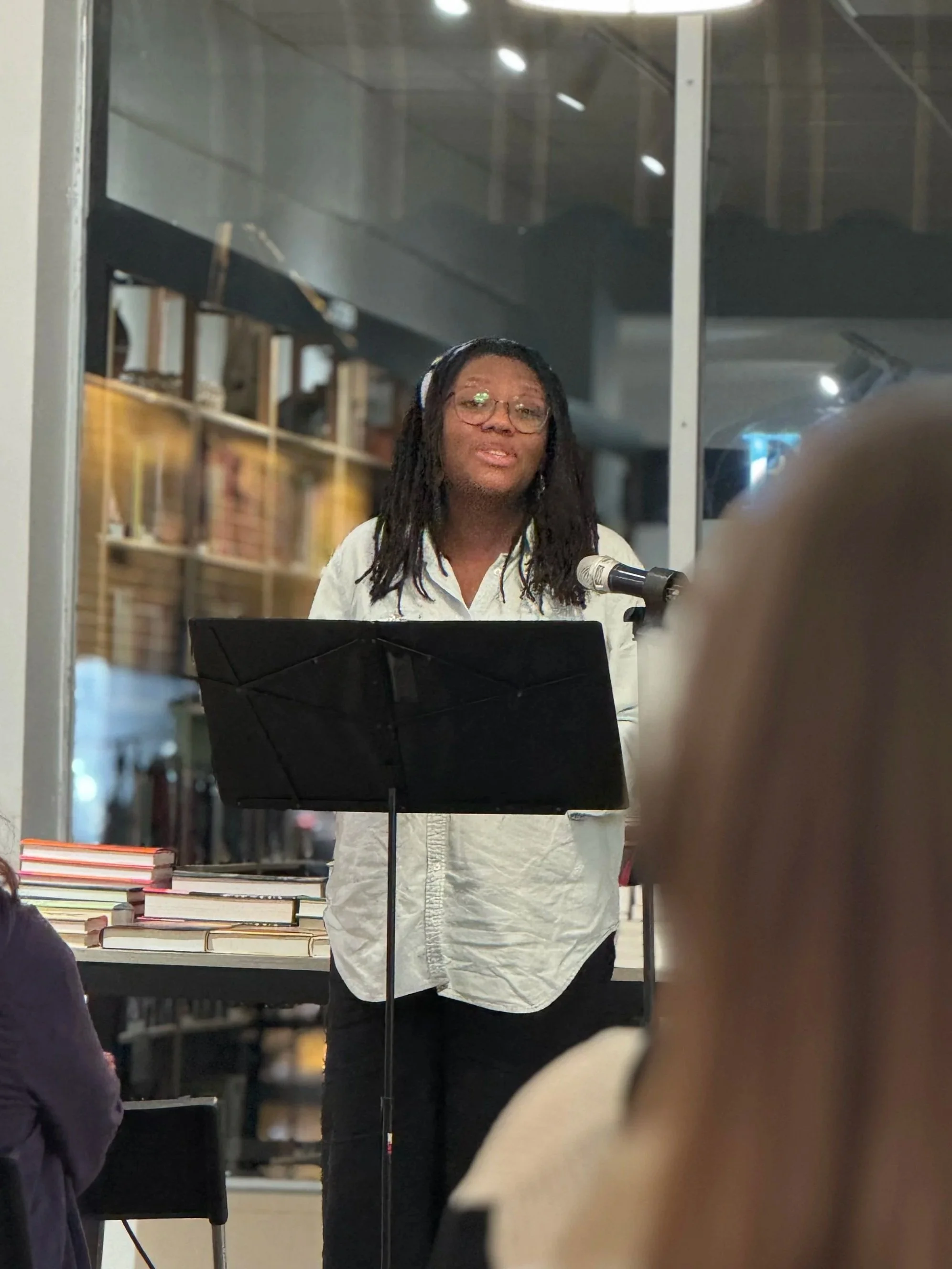 Ayşegül Savaş is a Turkish author living in Paris. She is the author of the novels The Anthropologists (Bloomsbury, 2024), a New York Times Editors Choice, White on White (Riverhead, 2021), and Walking on the Ceiling (Riverhead, 2019), and the nonfiction book The Wilderness (Transit Books, 2024). Her next book is the story collection, Long Distance, to be published by Bloomsbury in July 2025. Her work has been translated into seven languages and her stories have appeared in the New Yorker, the Paris Review, Granta, the Yale Review, the Los Angeles Review of Books and elsewhere. (PHOTO: Jolene Moffatt read the first few chapters of The Anthropologists before taking a final bow alongside writer/reader John Green and her fellow actor Bill Simmons.)